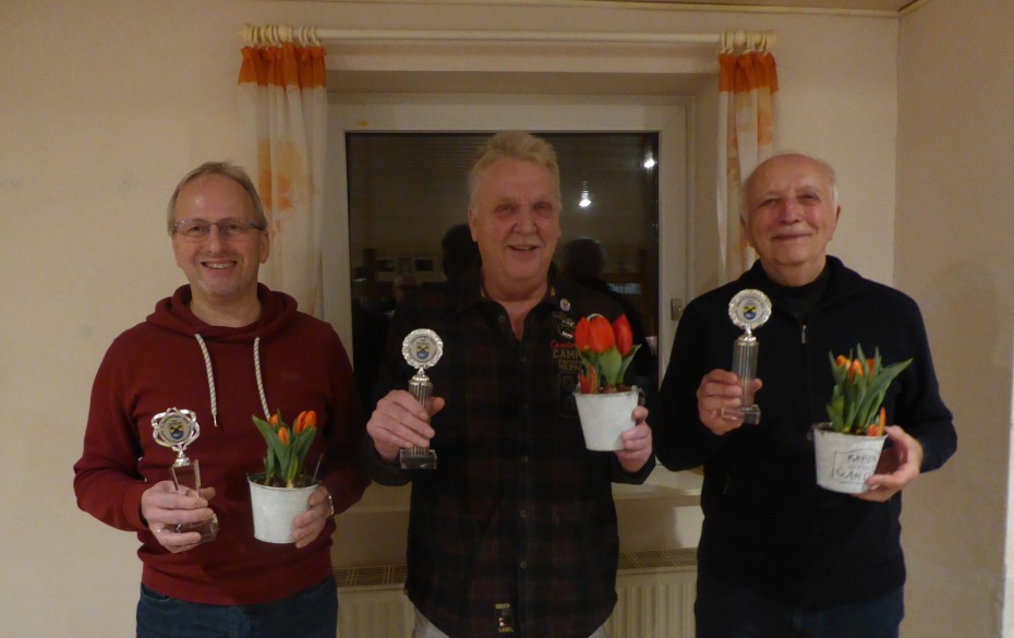 Jahressieger 2024 Egon Entelmann (Mitte), 2. Jahressieger Gerd Klein (l), 3. Jahressieger 2024 Ralf Kieselhorst (nicht im Bild)