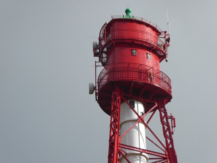 Vor dem höchsten deutschen Leuchtturm in Campen
