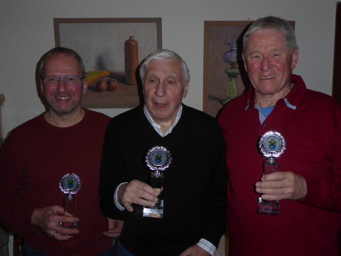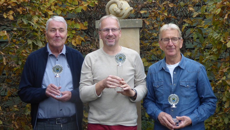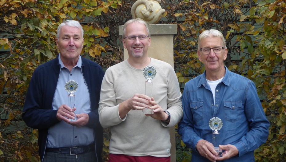 2. Jahressieger 2023 Gerd Klein (r), 3. Jahressieger 2023 Egon Entelmann (l), Sieger Ü-75-Senioren 2023 Wolfgang Arnold (Mitte)