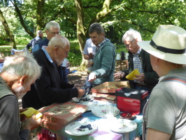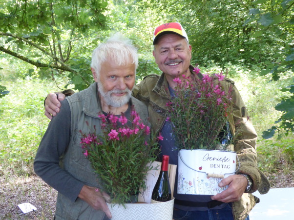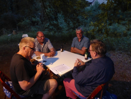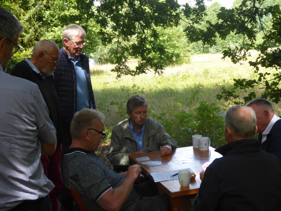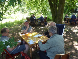 Blauer Himmel, strahlende Sonne, angenehmer Schatten unter hohen Eichen, leckere Speisen und Getränke, gute Gespräche und ganz viel Spaß beim Skatspiel